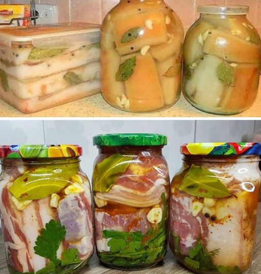 – După cele 2 zile, toarnă a doua saramură răcită în borcane, peste slănina deja sărată.