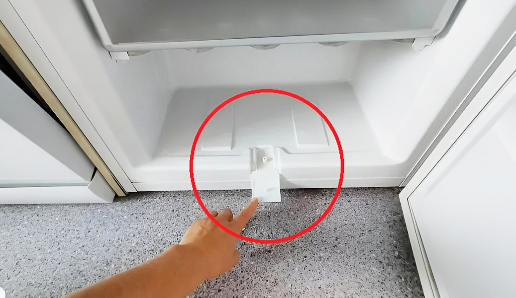 Dacă te uiți atent, s-ar putea să observi un ventil sau o pâlnie specială în partea de jos a congelatorului. Locul și aspectul acesteia depind de modelul frigiderului, așa că poți să cauți singur sau să consulți manualul de utilizare.