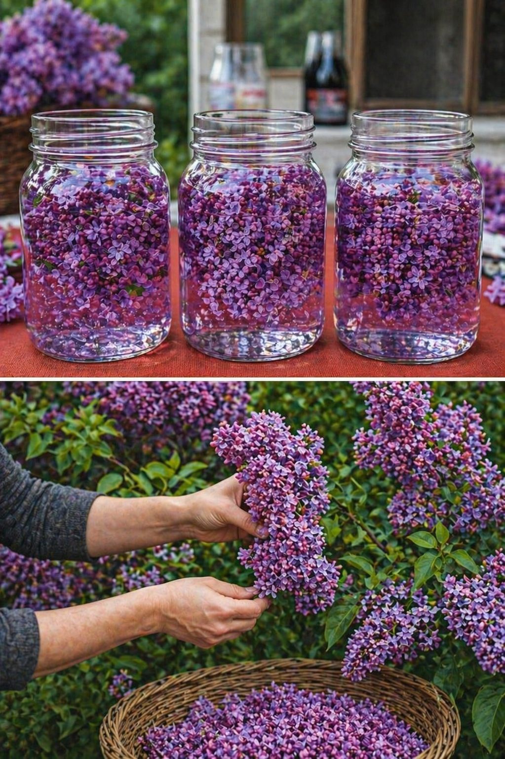 - Încălzește uleiul vegetal până la aproximativ 40°C și toarnă-l peste flori până sus.