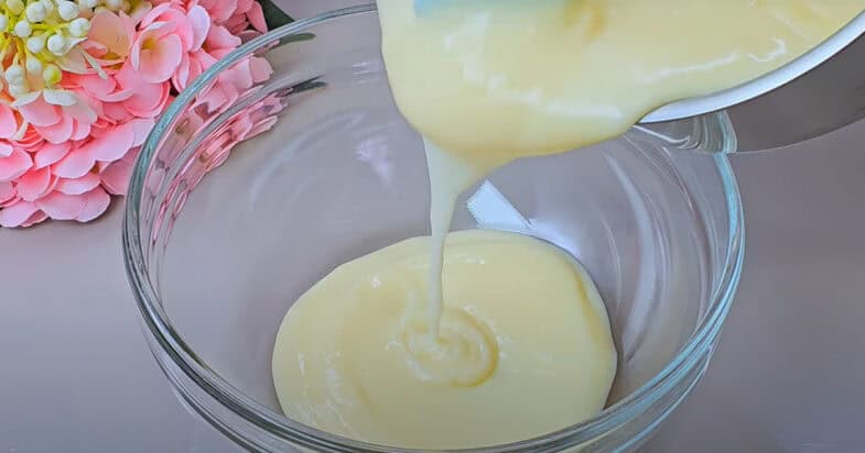 3. Transfer crema într-un bol, o acopăr cu folie alimentară în contact și o las să se răcească.