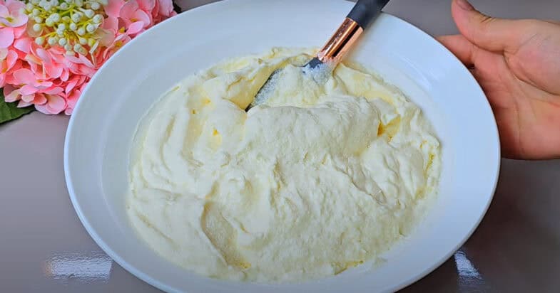 1. Bate untul moale cu un mixer până devine pufos.