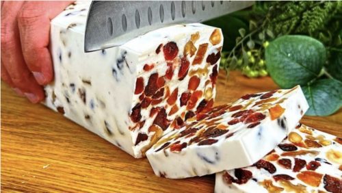 După ce desertul s-a întărit, tăiați cu grijă cutia și scoateți desertul.