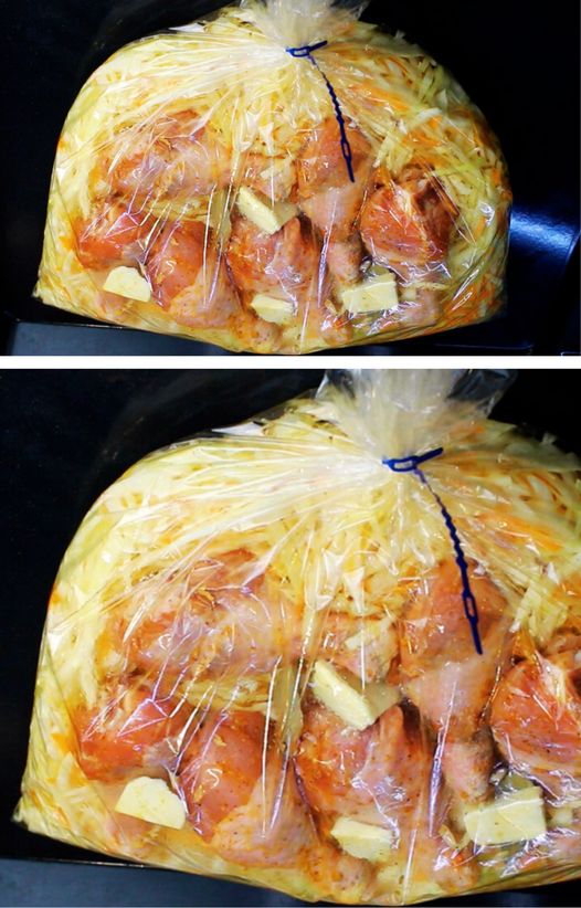 Astfel, veți obține un pui delicios și garnitura gata pregătită.