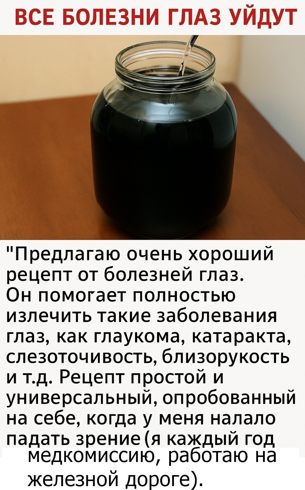Многие проблемы со зрением появляются незаметно — сначала легкая мутность, затем ухудшение зрения, а после и серьезные диагнозы. Ниже — простой народный рецепт, который помог вернуть ясность взгляду и улучшить самочувствие.