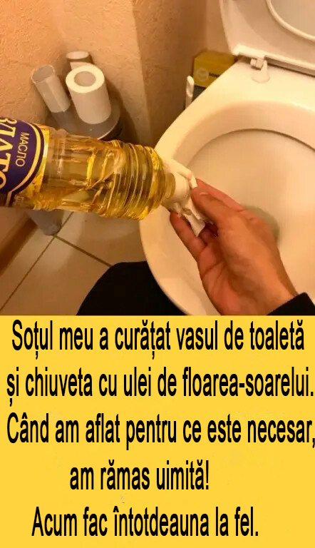 Citiți mai multe »Soțul meu a curățat vasul de toaletă și chiuveta cu ulei de floarea-soarelui. Când am aflat pentru ce este necesar, am rămas uimită! Acum fac întotdeauna la fel.