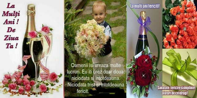 La mulți ani! Îți doresc ca fericirea să te urmeze la fiecare pas și să ai suficientă sănătate pentru toată viața. Să te încălzească mereu râsul copilăresc. Desigur, îți doresc ca în portofelul tău să se găsească de toate — dolari, euro și lei. Și să nu cunoști niciodată tristețea …