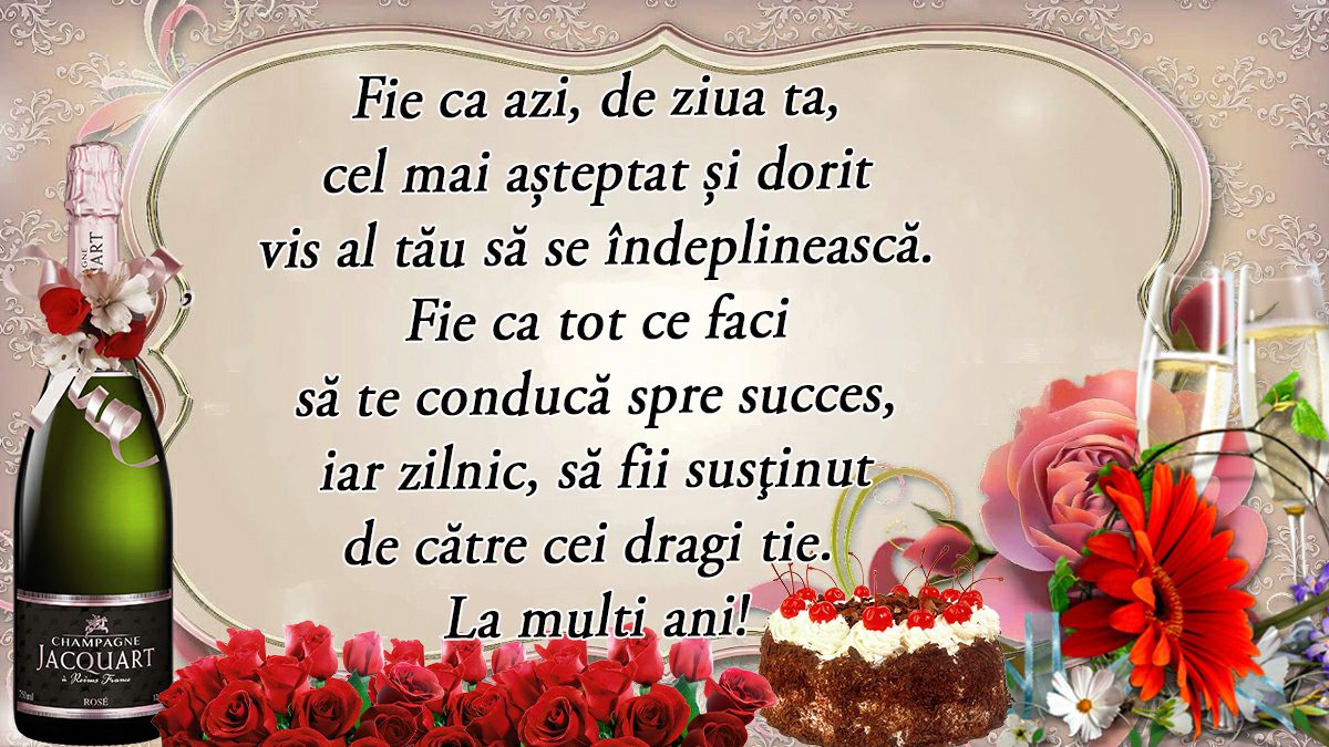 La mulți ani! Îți urez ca toate visele să devină realitate, să ai parte zilnic de momente frumoase și plăcute, să întâlnești în calea ta doar oameni buni și loiali, iar prietenii să-ți fie un sprjin în orice situație. Fie ca această zi să fie deosebită și memorabilă pentru toată …