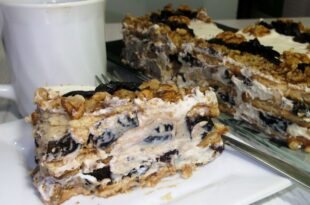 Baza acestui tort este formată din biscuiți dulci, iar crema fină de smântână, îmbogățită cu bucăți de prune uscate, creează un gust desăvârșit. Ingrediente necesare: — Biscuiți dulci, 300 g — Lapte, 100 ml — Nuci, 150 g — Zahăr pudră, 30 g — Zahăr vanilat, 10 g — Smântână, …