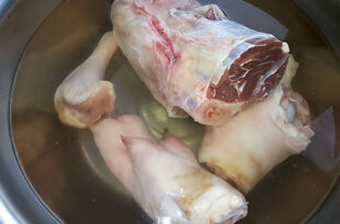 – **Răcitură de ciolan de porc** **Ingrediente:** – 1 kg ciolan de porc – 500 g carne de porc fără os și grăsime – 1 ceapă – 2-3 foi de dafin – Sare – după gust – 5-6 boabe de piper negru – 2-4 căței de usturoi **Mod de preparare:** …