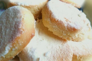 Privind lista de ingrediente pentru acești biscuiți, este greu de imaginat rezultatul, deoarece nu conțin ouă, praf de copt sau bicarbonat de sodiu. Cu toate acestea, ies extrem de moi și fragede, topindu-se în gură. Acești biscuiți fragezi pot fi păstrați câteva zile, așa că puteți face porții cât permite …