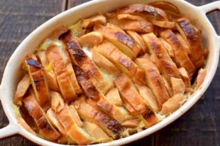 Această rețetă face parte din categoria deserturilor rapide și simple, pe care chiar și un bucătar începător le poate pregăti. Pentru a face această șarlotă, nu este nevoie să frămânți aluatul, ceea ce este foarte convenabil. Ca bază pentru prăjitură, folosim o franzelă obișnuită, tăiată felii. Intercalăm felii de …