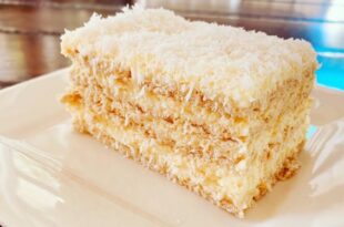 Rețetă explicată pas cu pas, cu imagini – Prăjitura Raffaello (fără coacere) – Nimeni nu refuză încă o porție – Prăjitură de casă moale și pufoasă Ingrediente necesare: 1 L lapte 8 linguri zahăr 2 plicuri budincă de vanilie 120 g unt (la temperatura camerei) 50 g ciocolată albă 210 …