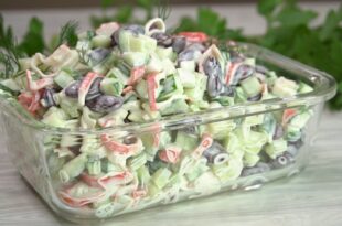 ✅ O salată gustoasă cu doar 3 ingrediente, rețeta mi-a fost împărtășită de abonata mea Valentina, pentru care îi mulțumesc foarte mult. Salata este într-adevăr foarte gustoasă, și vreau să vă împărtășesc și vouă această rețetă. Rețetă: Surimi (batoane de crab) – 200 g Castravete proaspăt – 2 bucăți Fasole …