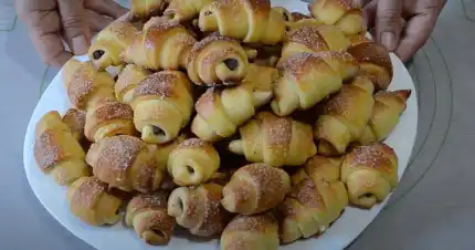 după rețeta mea ies într-o cantitate mare dintr-o singură frământare și rămân proaspeți și moi pentru mult timp. Rogalii pot fi umpluți cu diferite umpluturi, cum ar fi dulceață, nutella, nuci, gem etc., important este ca umplutura să fie densă și să nu se întindă. Ingrediente: Pentru aluat: 100 ml …