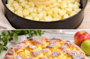 Dacă ai poftă de ceva dulce, simplu și de casă, această plăcintă cu mere este alegerea perfectă. Se prepară rapid, din ingrediente obișnuite, pe care cel mai probabil le ai deja în bucătărie. Rezultatul este un desert fraged, moale și incredibil de aromat, perfect pentru întreaga familie. Doar 3 …