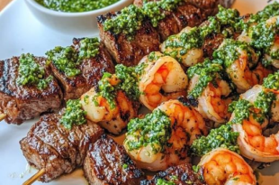 Citiți mai multe »Frigărui surf și turf cu sos chimichurri