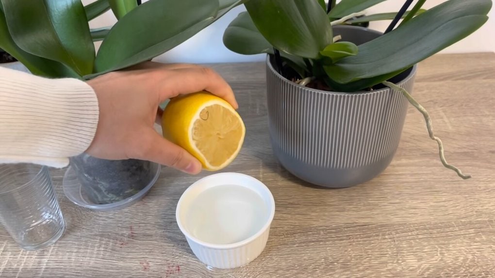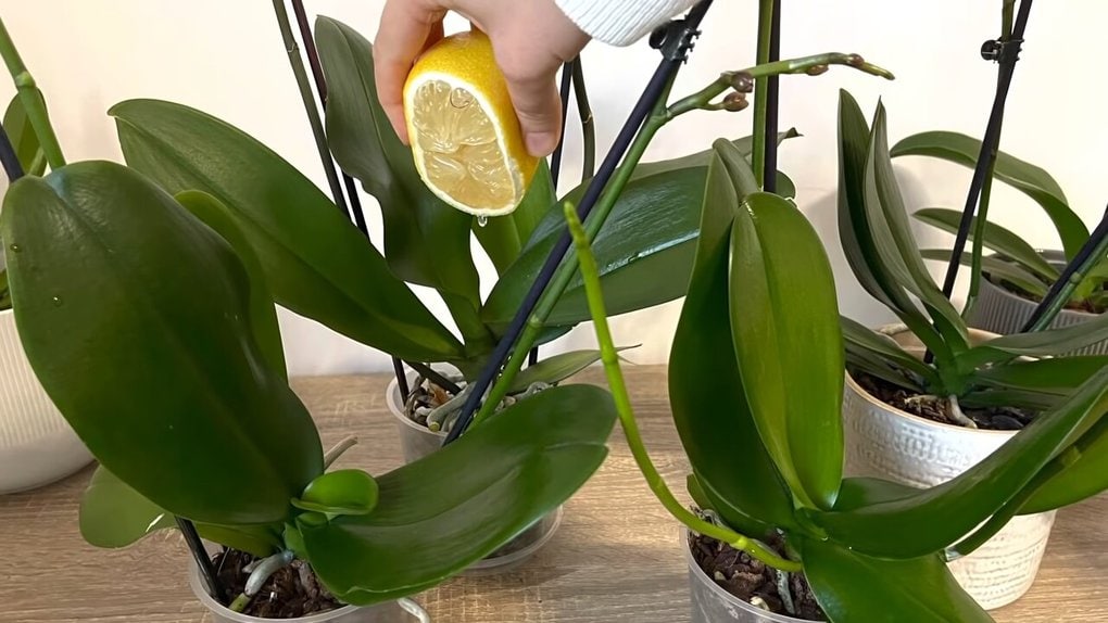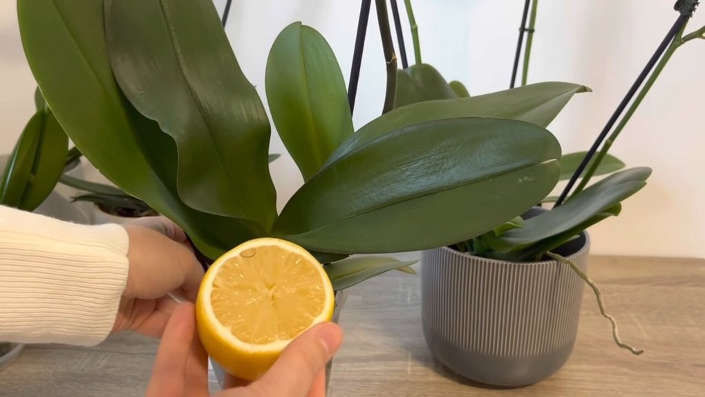 Lămâia este un antioxidant care acționează și ca un mijloc de protecție împotriva insectelor, ținându-le la distanță. În plus, lămâia conține o cantitate mare de potasiu natural și vitamina C, care hrănesc frunzele orhideei, ajutându-le să se recupereze și să hrănească întreaga plantă.