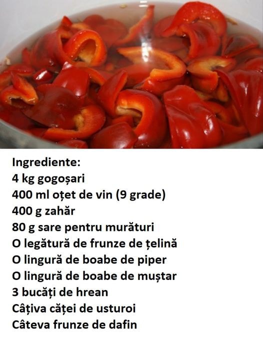 • 5 kg de gogoșari sau ardei (de orice culoare)