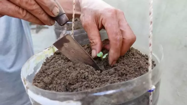 Umpleți sticlele cu pământ fertilizat, îmbogățit cu humus și îngrășăminte. În acest sol pregătit, plantați răsadurile de varză.