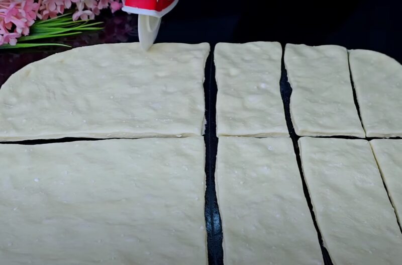 Întindem lipia într-un dreptunghi și o tăiem în 8 dreptunghiuri egale.