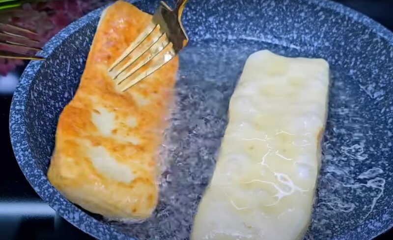 Încălzim uleiul vegetal într-o tigaie și punem bucățile de aluat pe suprafața acesteia.