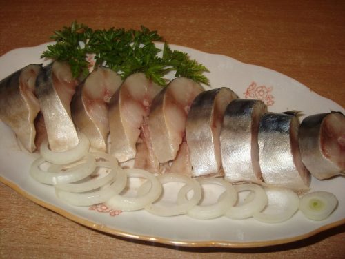 Apoi legăm punga și o punem la frigider pentru o zi. După acest timp, scoatem macroul, îl tăiem bucăți și îl servim cu cartofi, ceapă și pâine neagră – o adevărată plăcere!