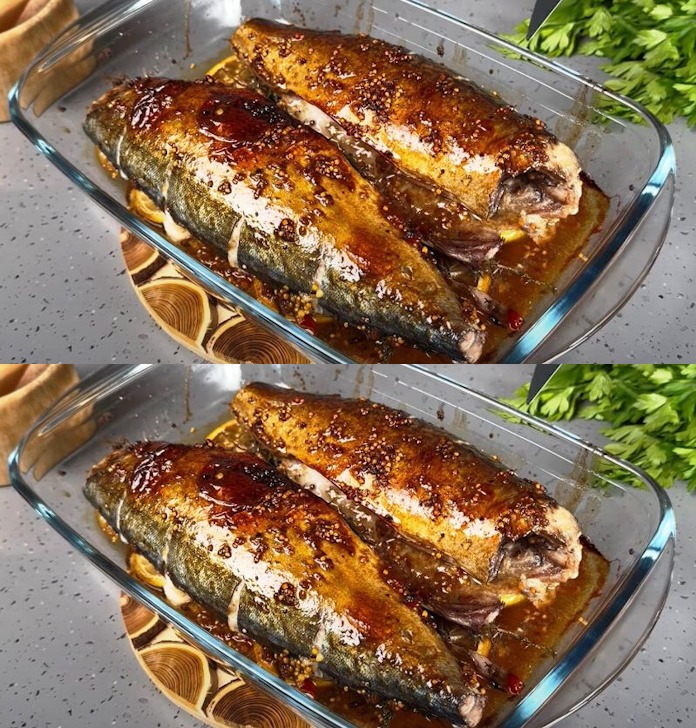 Toarnă marinada rămasă peste pește, dar păstrează puțin. Coace peștele la 180 de grade timp de 30-35 de minute. Cu 10 minute înainte de a fi gata, unge peștele cu marinada rămasă.