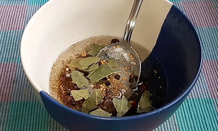 - Într-un castron adânc, combină uleiul vegetal cald, zahărul, sarea, boabele de piper negru și aromat, coriandrul și semințele de muștar.