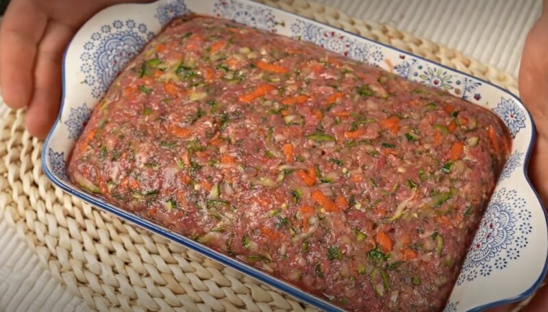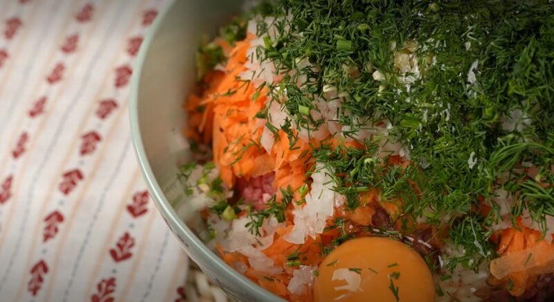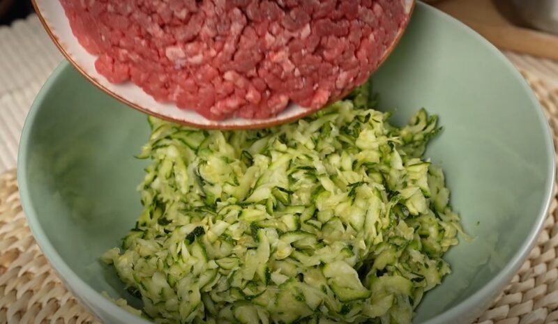 2. Dați morcovul pe răzătoare și tocați mărunt ceapa. Adăugați aceste legume în amestecul de dovlecei împreună cu carnea tocată.