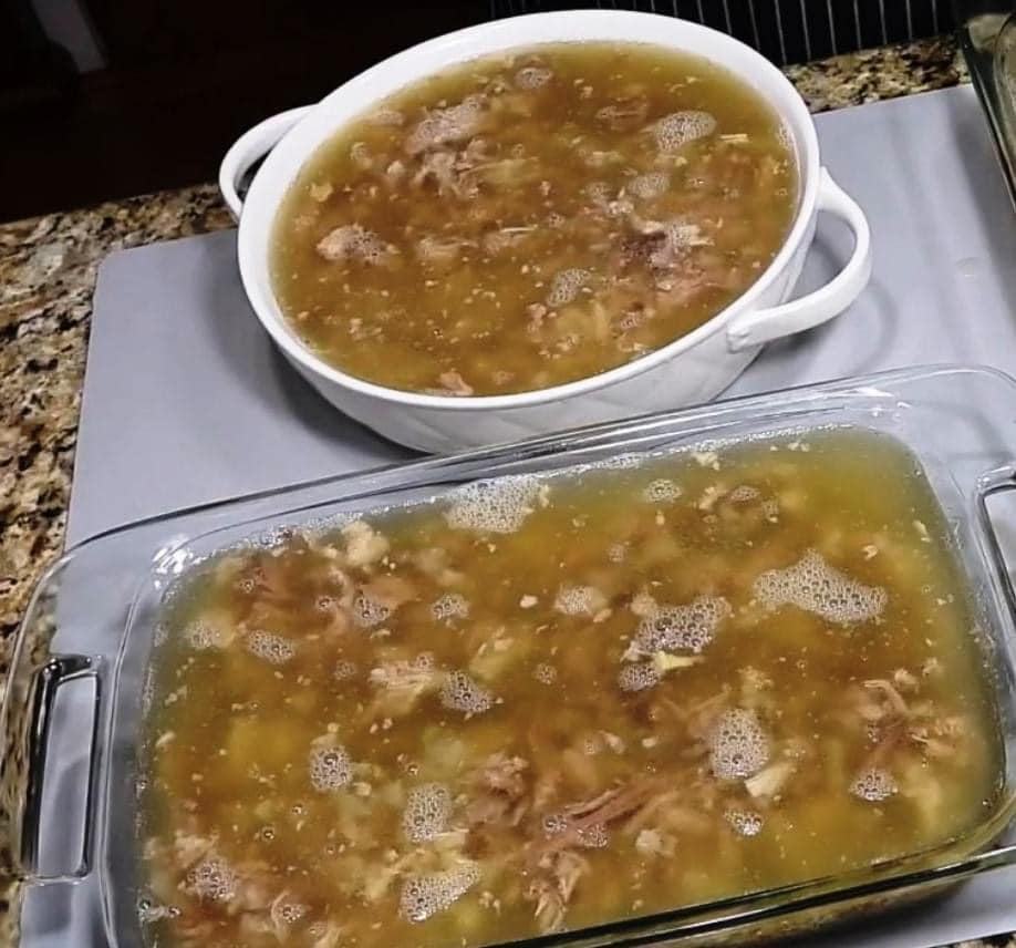 Cu 2 ore înainte de final, sărați bulionul după gust. Rețineți că, la rece, piftia va fi mai puțin sărată decât atunci când e fierbinte.