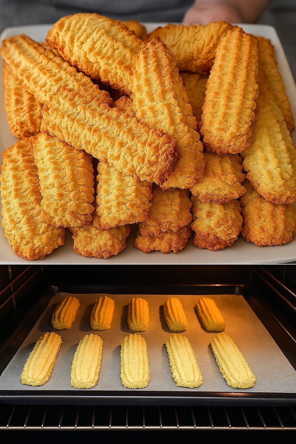 Presărăm fursecurile gata coapte cu zahăr pudră.