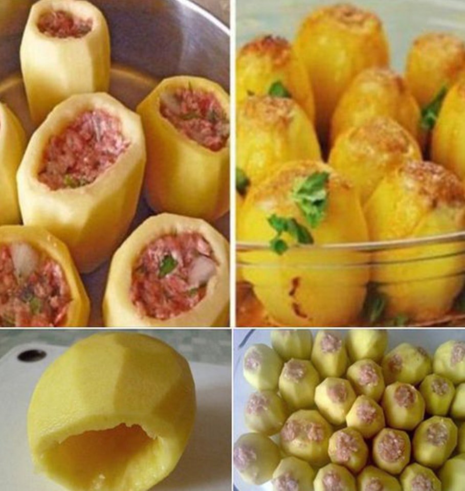 – Umpleți fiecare cartof scobit cu amestecul de carne tocată.