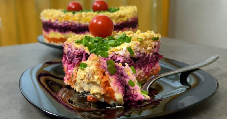 Prepar o salată de care este imposibil să nu te îndrăgostești – doar aspectul ei va fi atracția oricărei mese festive.