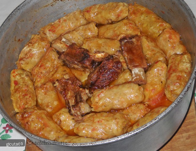 Varza am desfacut-o in foi potrivit de mari carora le-am taiat cotoarele si nervurile mai groase.