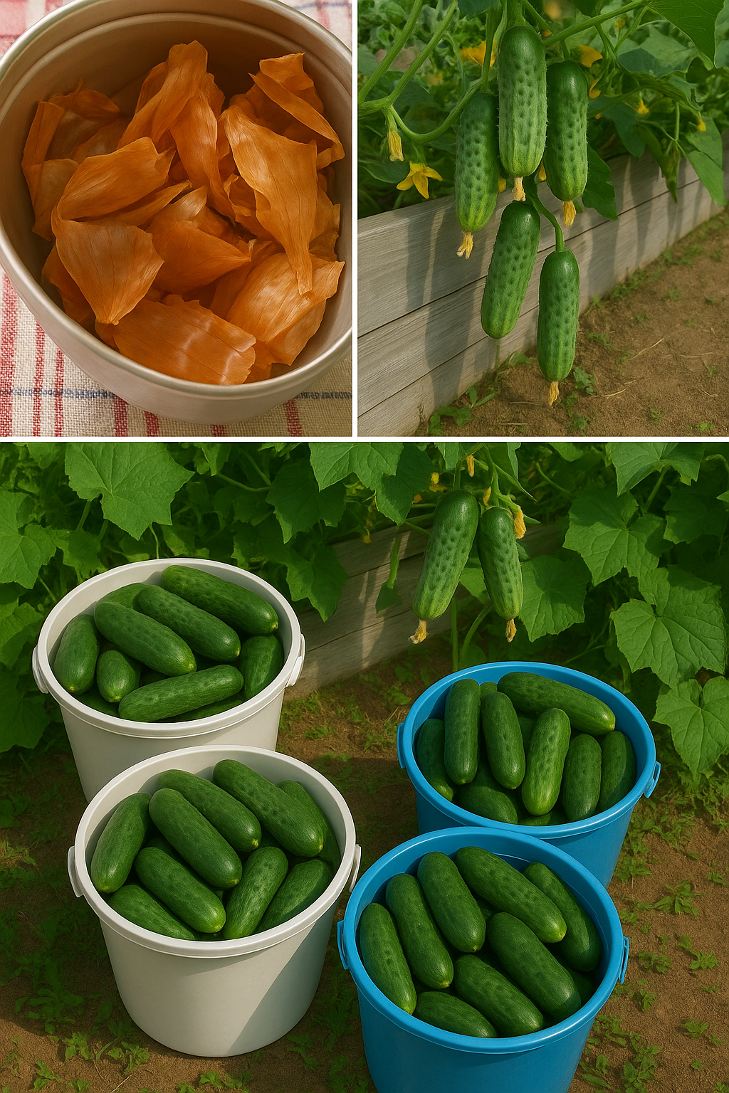 Fierbe apa cu cojile de ceapă, apoi acoperă și lasă la infuzat timp de 24 de ore. După ce s-a răcit, strecoară lichidul și toarnă câte 0,5 litri la rădăcina fiecărui tufă de castraveți. Rezultatul? Frunze verzi, sănătoase și o producție abundentă.