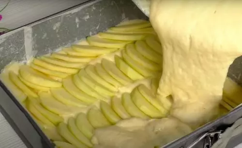 - Acoperiți stratul de mere cu restul aluatului și nivelați suprafața.