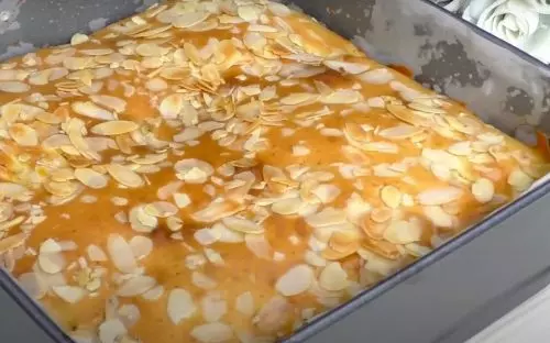 Opțional, înainte de coacere, puteți presăra tarta cu fulgi de migdale, iar după coacere o puteți decora cu zahăr vanilat.