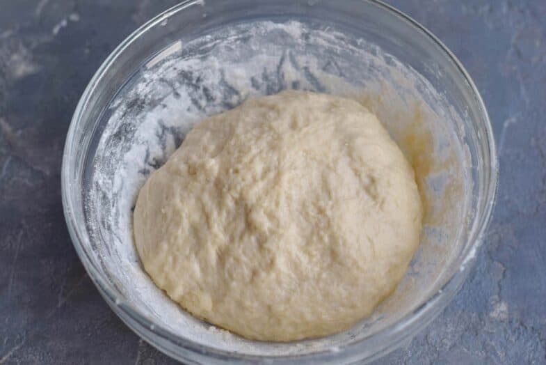 2. Amestecați compoziția până devine omogenă, apoi adăugați treptat făina cernută. Frământați un aluat dens și moale. Acoperiți-l cu un prosop și lăsați-l deoparte timp de 15 minute.